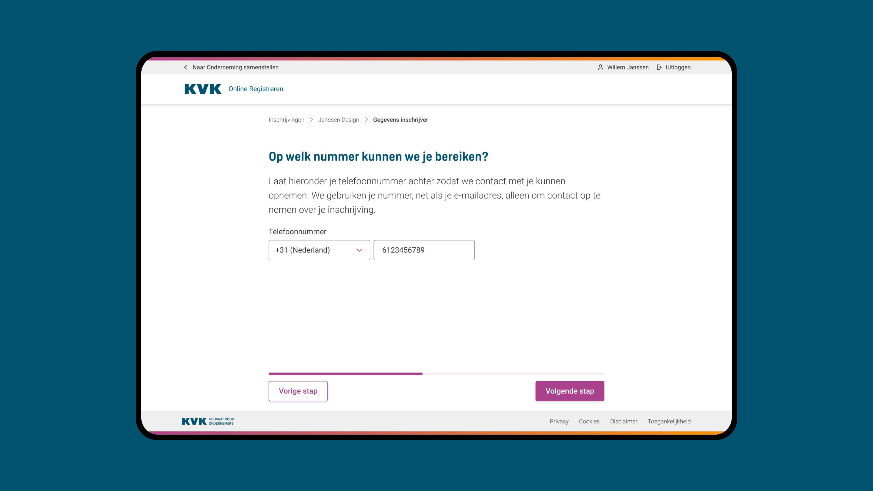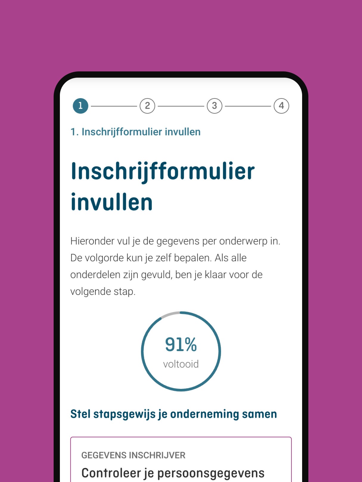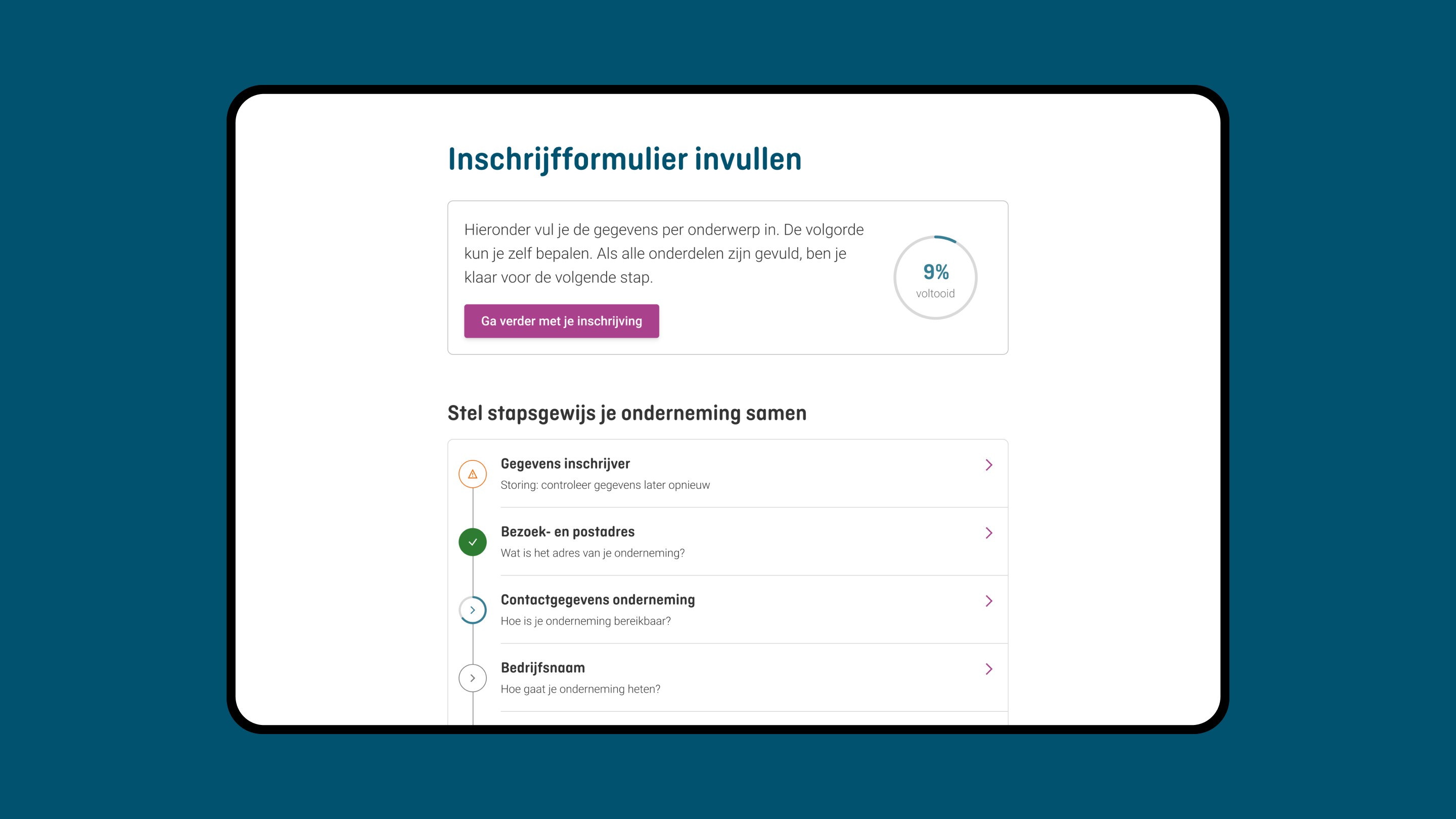 A step indicator providing insight into your online registration process stage.