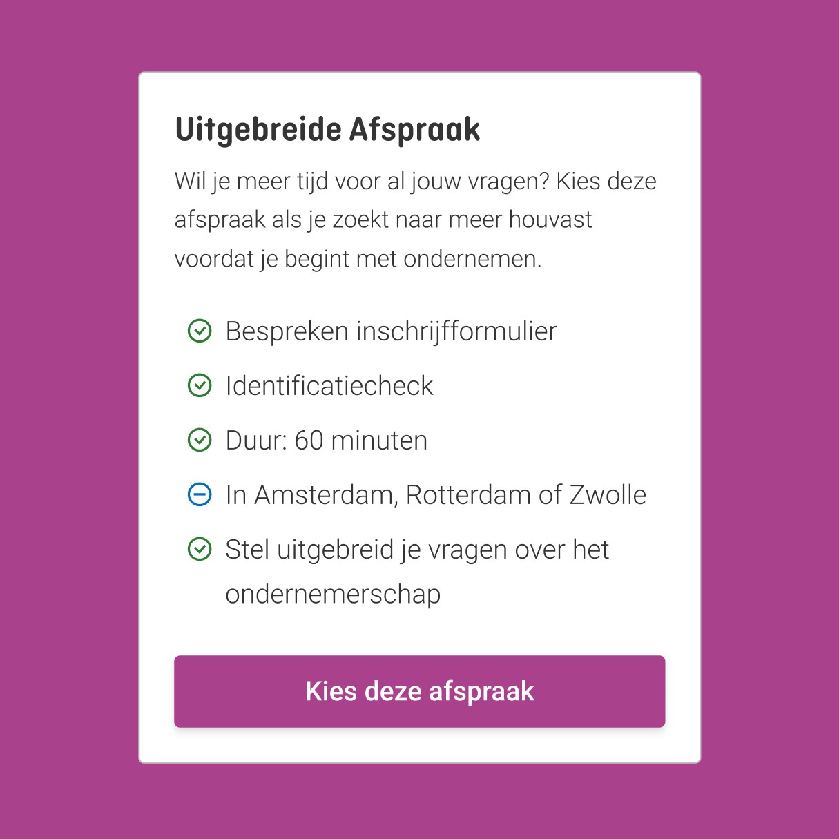 Offering information, guidance, and support for people who register a company at the Dutch chamber of commerce.