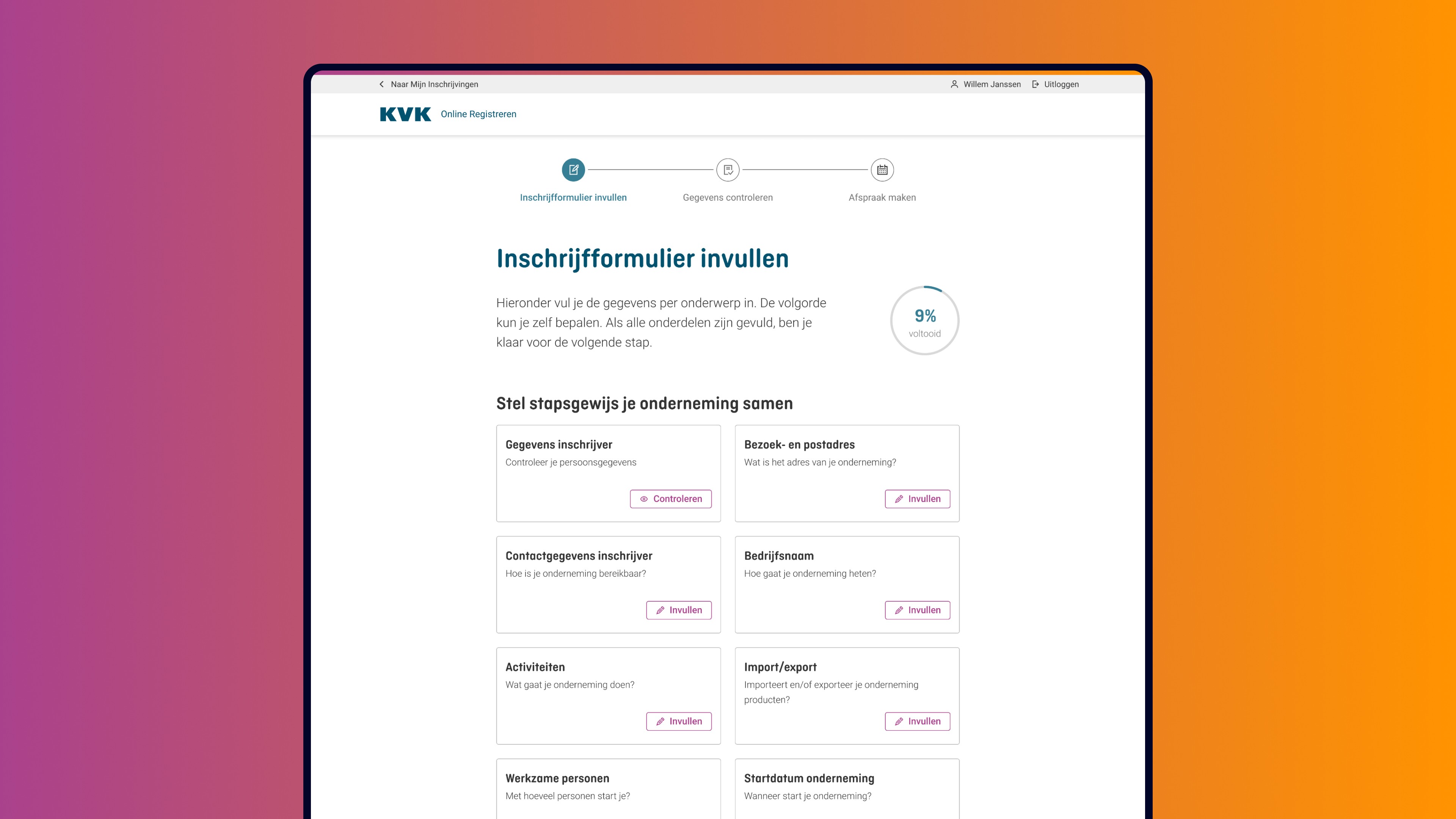 Every entrepreneur starting a business in the Netherlands must register at the Netherlands Chamber of Commerce (KVK)—a process that historically involved complex paperwork, long phone calls, and in-person appointments. As Senior Product Designer, I led end-to-end design for the online registration experience, balancing user needs with legal requirements, technical constraints, and the long-term ambition to modernise (digital) government services to serve over 2,5 million companies registered.