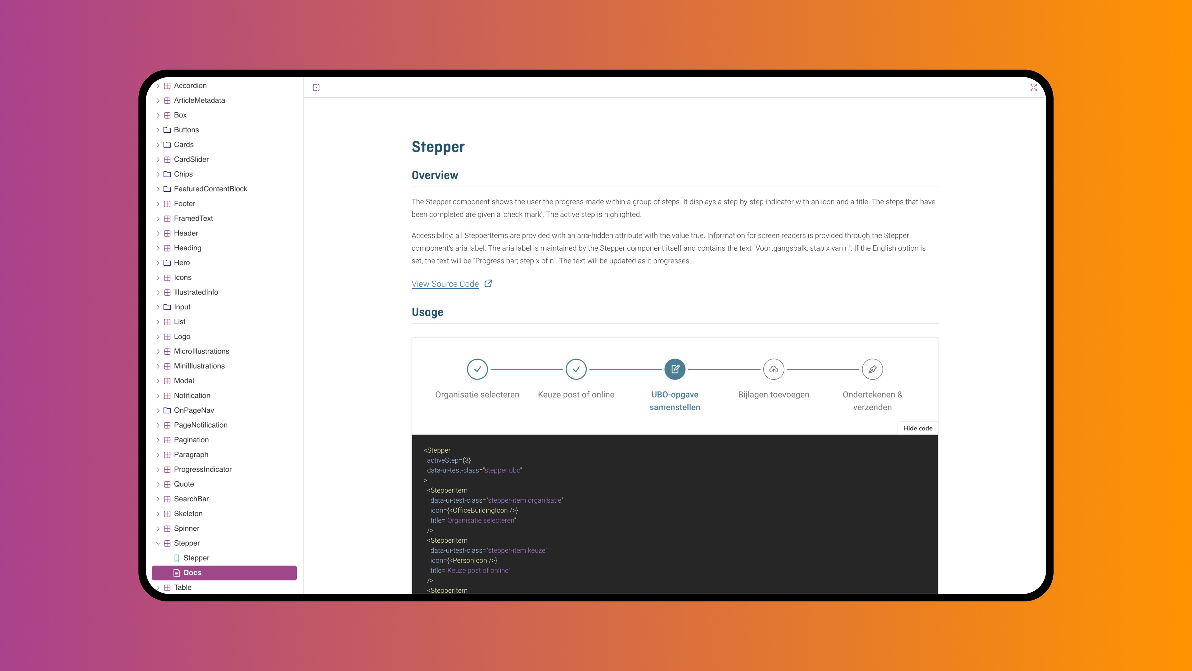 Design system documentation in Storybook