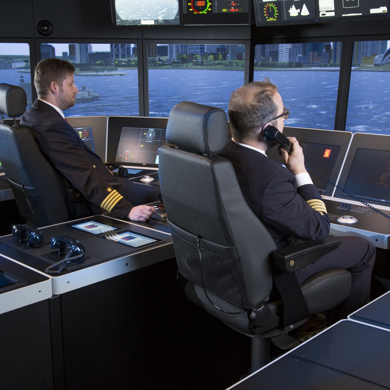 Combining both theory and practice using their 59 connected simulators for bridge, engine and cargo.